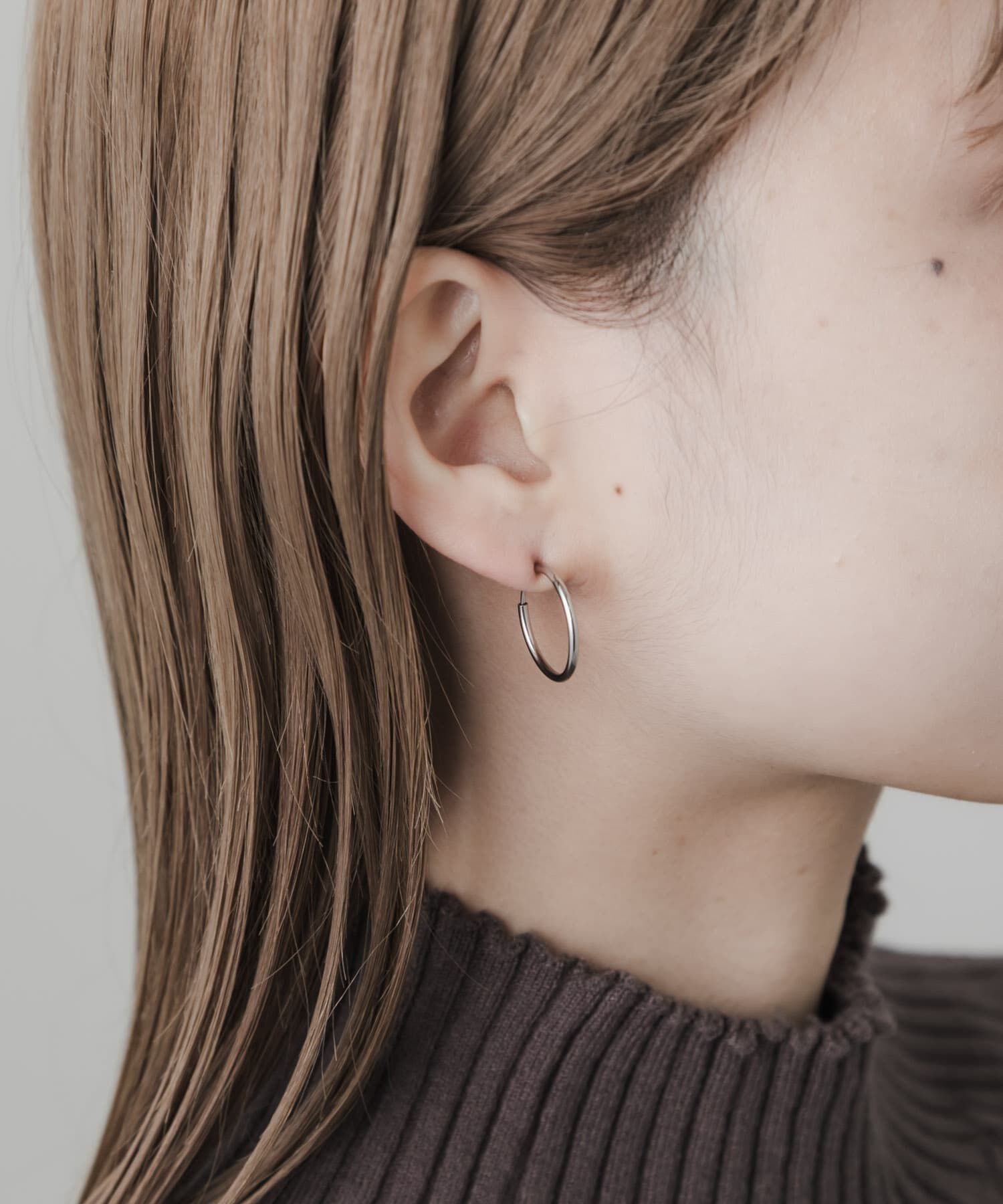 【Silver925素材の洗練されたフープ】毎日のスタイリングに寄り添うシンプルなサイズとルックスが魅力のイヤリング。ネジ式のデザインが、より高級感のあるディテールを演出します。▼色違い(SILVER.. |