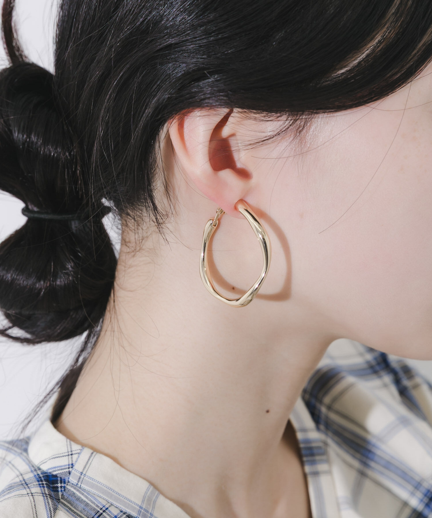 【横顔にニュアンスを添えるビッグイヤリング】●絶妙な歪みを加えたフォルム●小顔効果も期待できるビッグフープ●顔周りを華やかに手書きのラインのような、緩やかな歪みを持たせたフープイヤリング.. |