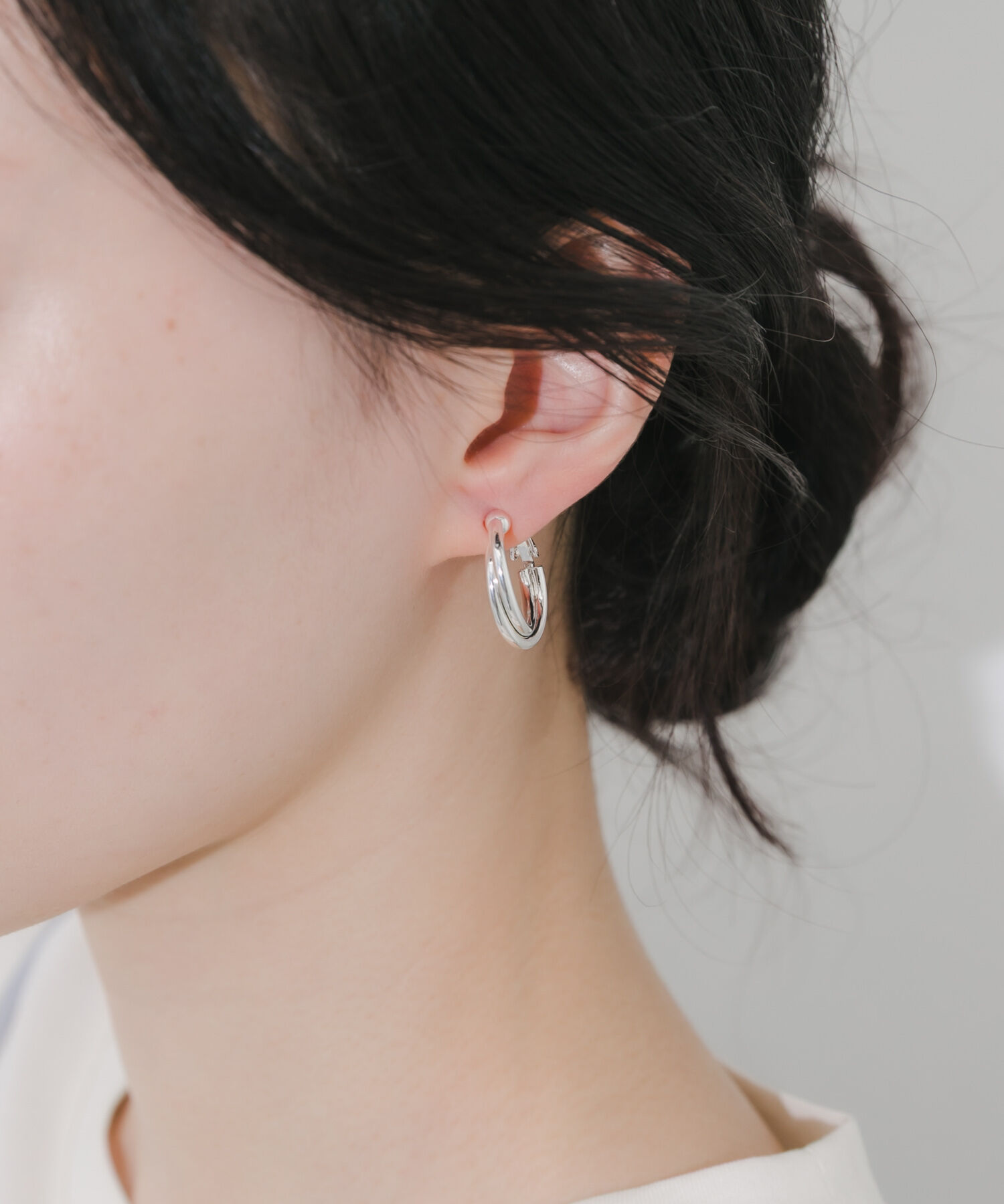 【ツイストデザインが耳元のアクセントに】●ひねりを加えた幅広のメタルライン●デザイン性がありながらもどんな服にもマッチするデザイン●クールなシルバーカラーが、耳元に知的な透明感をプラスプ.. |