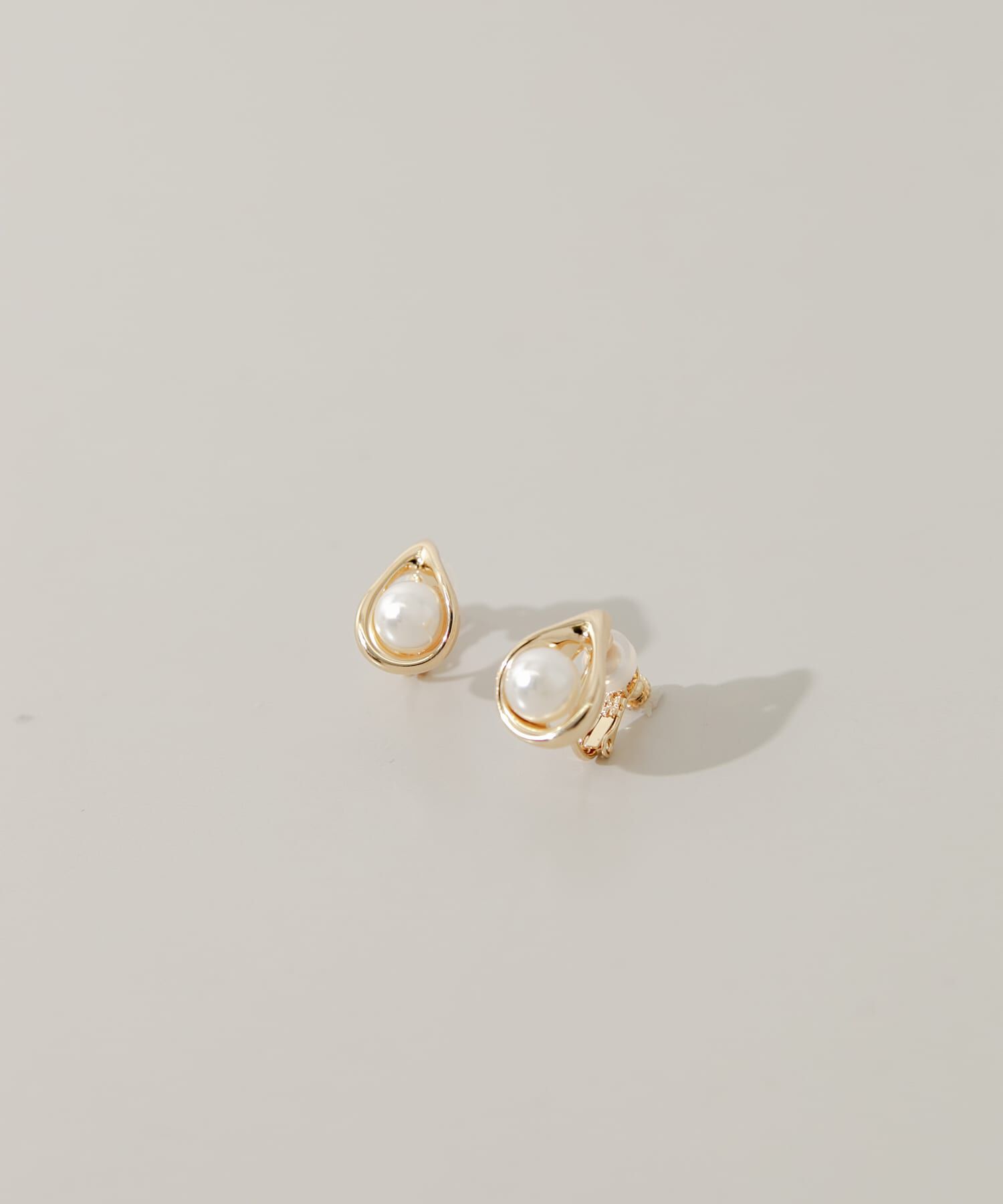 【耳元に一滴きらめき】●しずく型のメタルフレームがパールを優しく包み込む●耳たぶにちょこんと収まるミニサイズ●パールの甘さをゴールドの縁取りで引き締めメタルのラインでミニパールを囲んだ、.. |