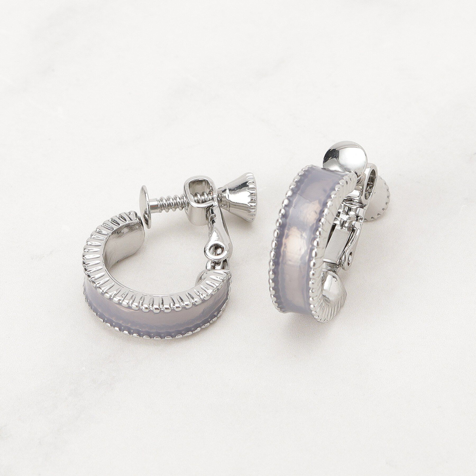 きれいなエポカラーをまとったメタルフープイヤリング。【デザイン】コンパクトなメタルフープイヤリングに春らしいカラーのエポ樹脂を載せたイヤリング。ねじ式イヤリングなので、お好みのフィッ.. |