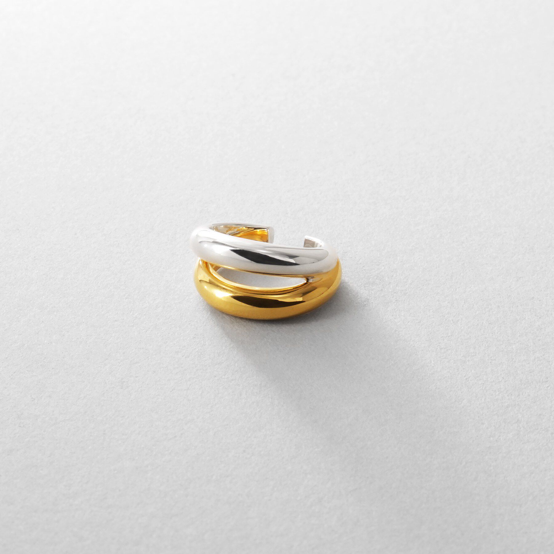 シルバーとゴールドの2色を組み合わせ、ニュアンスのあるデザインのイヤーカフ。コンパクトなサイズながら立体感と艶やかな輝きが際立ち、耳元に洗練されたアクセントを添えます。柔らかなボリュー.. |