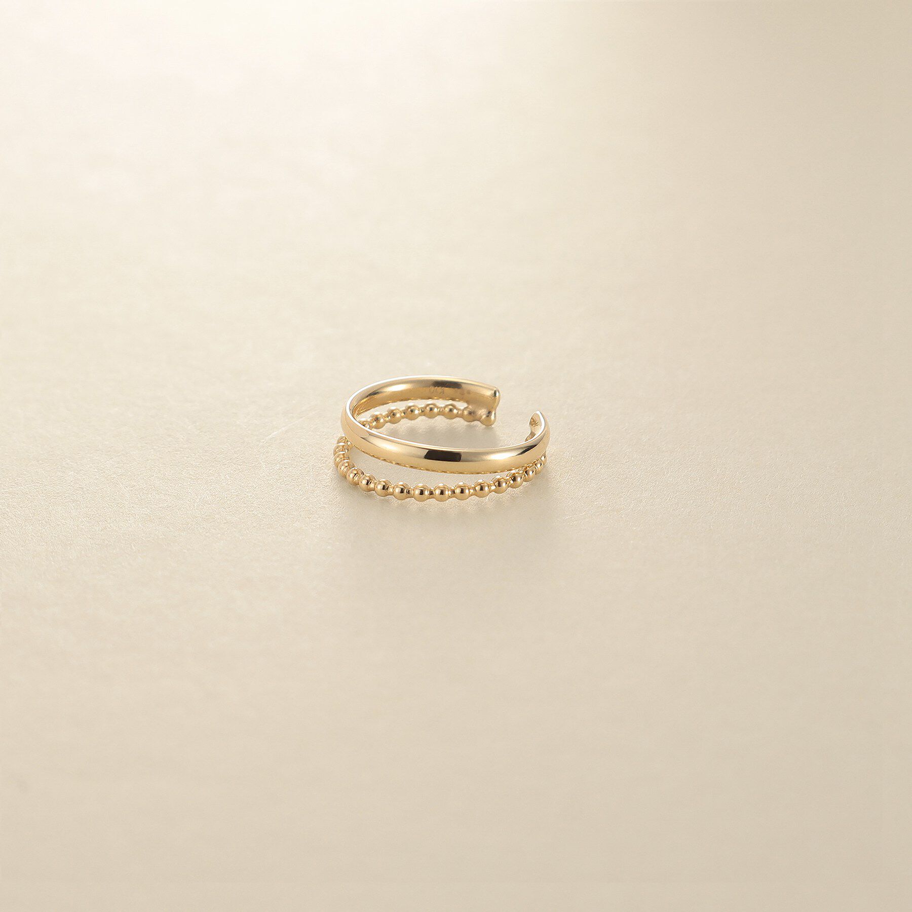ダブルラインが美しいK10素材のイヤーカフ。K10ならではの優美で贅沢な地金の輝きを放ちます。程よいサイズ感で顔周りをスッキリと魅せてくれるデザインで、デイリーユースにもぴったりなアイテム.. |