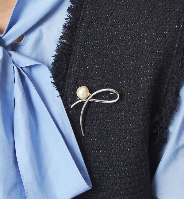 甘くなりすぎないデザインが魅力のブローチ■デザイン気負わずさらりとつけられるシンプルなフォルムのブローチ。フェイクパールがあしらわれたデザインで、セレモニーの場におすすめのアイテムです..