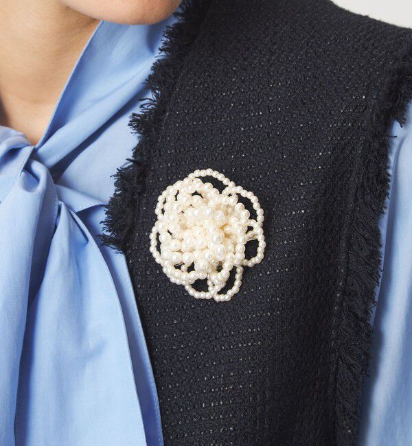 セレモニーシーンに欠かせないブローチ■デザイン大きさの異なるフェイクパールでサークルをデザインしたブローチ。小ぶりながらも華やかな印象が魅力的です。■コーディネートネイビーのジャケット..