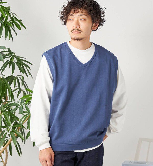 【シップス/SHIPS】 SHIPS any: COTTON USA ガーメントダイ スウェット Vネック ベスト◇