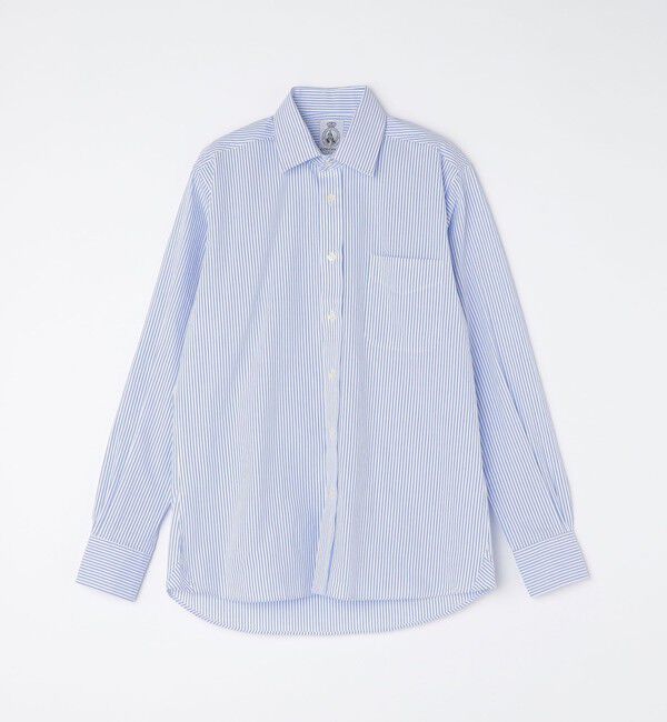 ビジネス/ドレスシーンに向けたシャープなセミワイドカラーシャツ。上質な細番手の先染めロンドンストライプ素材を使用しており、あらゆるジャケットやネクタイとも相性抜群な汎用性ある1着。オー.. |