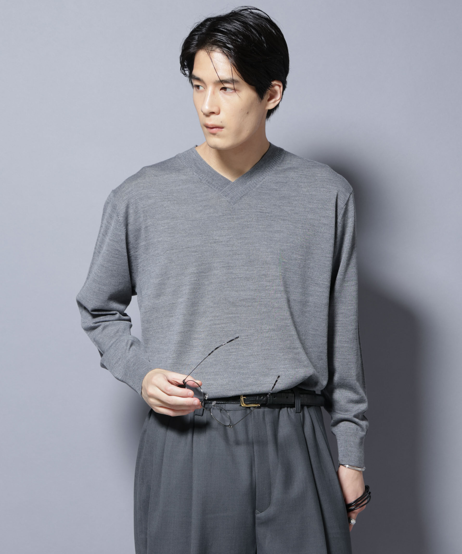 【ナノ・ユニバース/NANO universe】 「毛玉レスニット」ファインゲージVネック