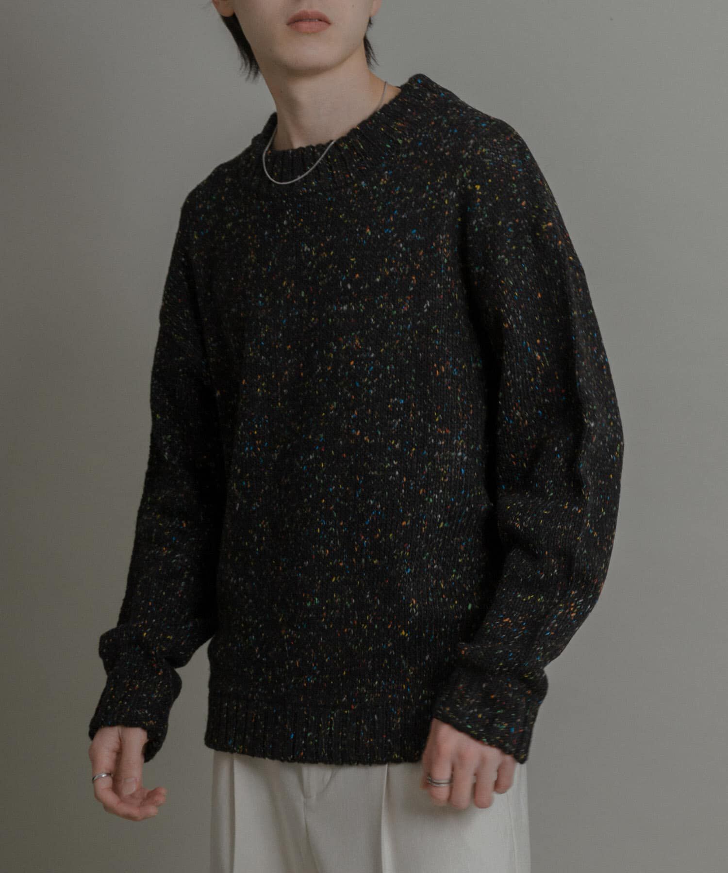 【ほっこり暖か、ネップ素材の表情が魅力のルーズフィットニット】・ほっこりとあたたかな表情のネップニットが、秋冬の着こなしに温もりと深みを加えます。・シンプルながらもネップの表情が遊び.. |