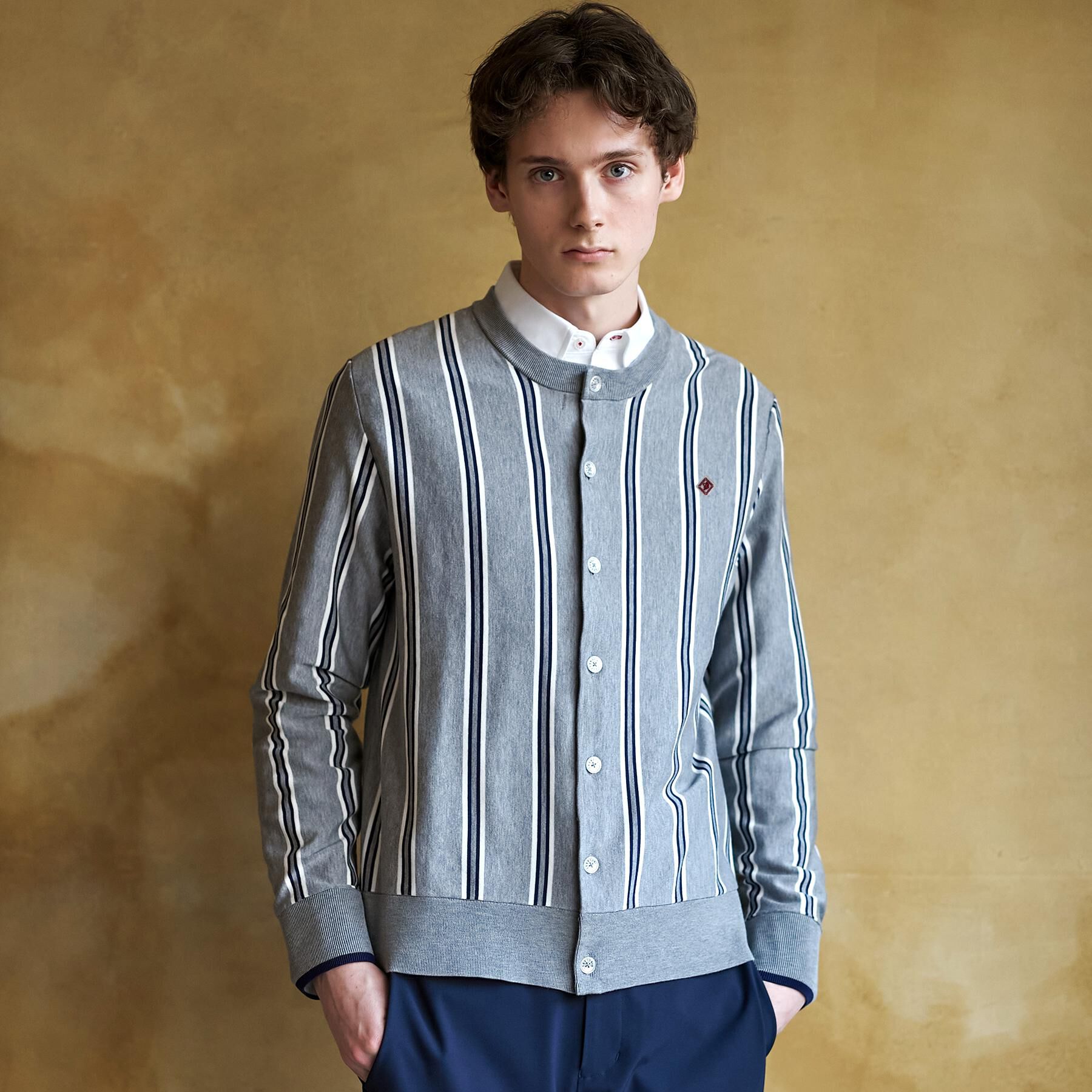 オリジナルワッペンが映えるラウンドカラーニットカーデ●インナーを気にせず着られる丸首カーディガン●裾のたまりが気にならないパターン設計●長いシーズンで活躍するアイテム●ウールの光沢感●軽量.. |