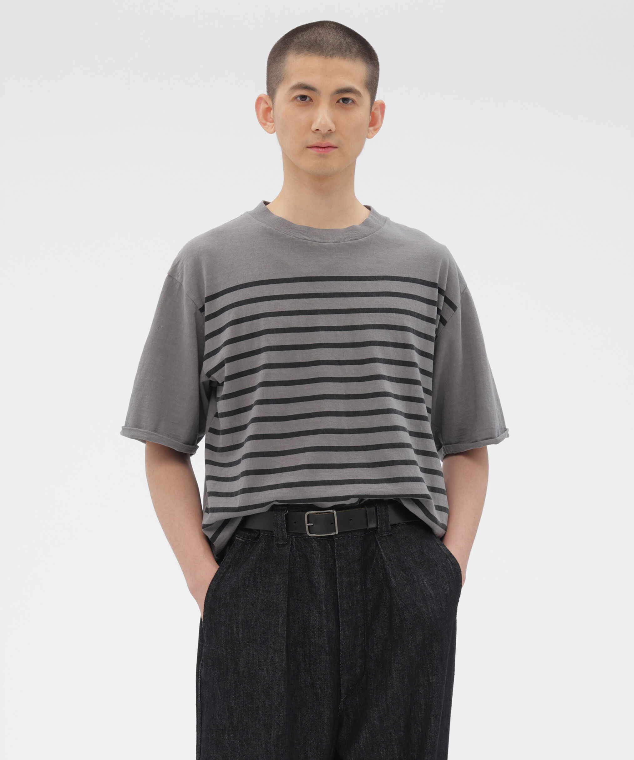 ドライタッチながら、ふっくらとした質感をあわせ持つ糸を用いたTシャツ。度目を緩く編むことで軽さをいかし、やわらかな着心地に仕上げた一枚。3色で構成したワイドピッチのマルチストライプが主.. |