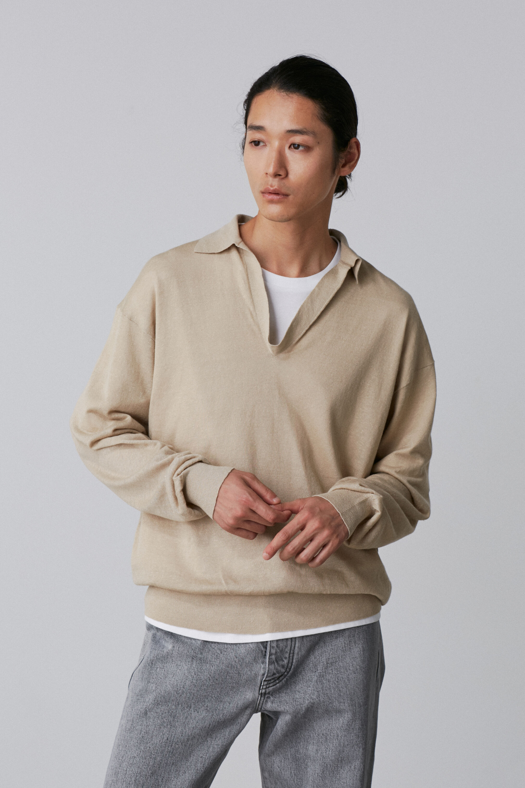 <サイズ3>直営店とオンラインショップでしか手に入らないサイズ展開。リネンコットン素材を使用したスキッパーニット。インポートならではの素材味とカラーリングが特徴です。≪YLEVE / イレーヴ≫.. |