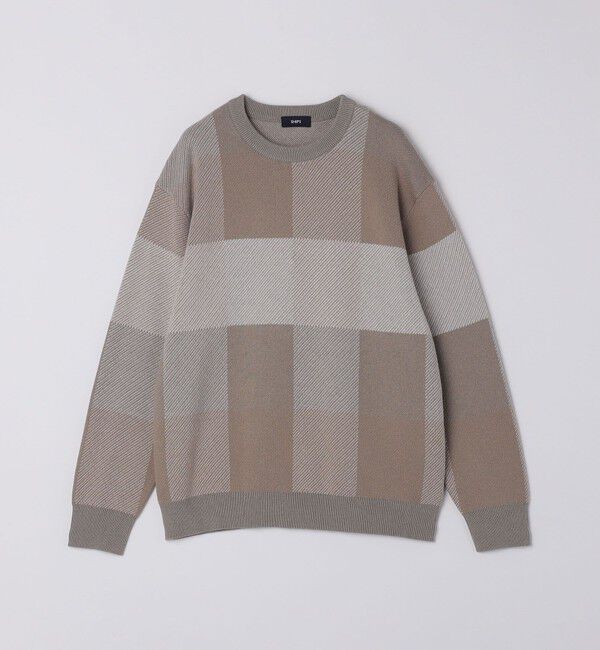 【シップス/SHIPS】 SHIPS:〈手洗い可能〉コットン カシミヤ チェック クルーネック ニット