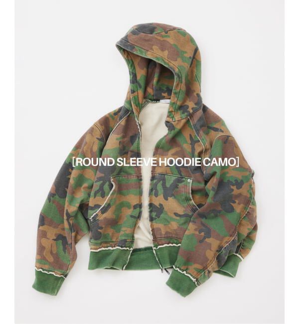 ROUND SLEEVE HOODIE CAMOヘビーオンス裏毛を使用した、存在感のあるジップパーカ。ミリタリージャケットのフォルムをベースに、袖を前振りに設計することで、ブルゾンのような立体的なシルエット.. |