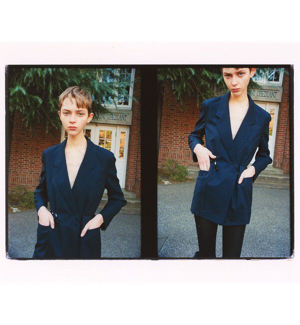 ■デザインウールの名産地・尾州でオリジナル開発した生地を使用した3シリーズのうちのダブルジャケット。薄く肩パッドを入れることで、より構築的で美しいフォルムに仕上げました。マニッシュな3ピ.. |