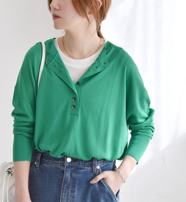 2025SSquaranciel●デザインカラーリングと前立てのボタンがコーディネートのアクセントになるニットプルオーバー。ヘンリーネックでカジュアルなデザインながら、上品な素材感で女性らしく着こなし.. |