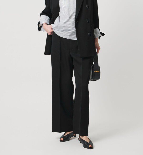 ハリと落ち感が描く、さりげない美しさ■デザインウエストは平ゴム仕様で着脱がしやすく、2タックとギャザーを入れることで程よいボリューム感を持たせたワイドパンツ。素材に落ち感があるため広が.. |