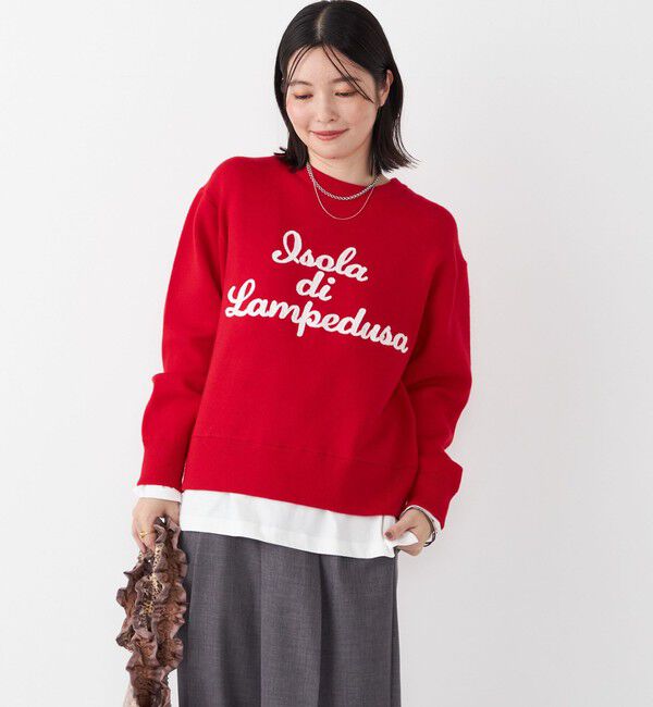 ■25AW■スウェット見えする、大人カジュアルにぴったりなロゴニット。-デザイン-立体感のあるサガラ刺繍のロゴが映え、存在感のある一着。スウェット感覚で気軽に着用いただけ、大人見えするロゴニ.. |