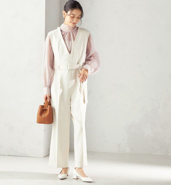 【シップス/SHIPS】 〈手洗い可能〉ダブル クロス Vネック ベルト付 オールインワン(セレモニー対応可)