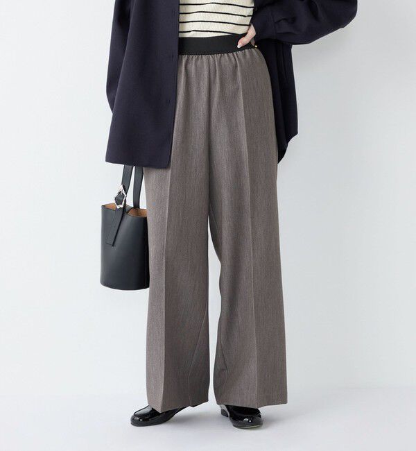 ■25AW■ウエストゴムデザインがトレンド感のあるストレートワイドパンツ。-デザイン-太めのウエストゴムがアクセントになったデザイン。センタープレス入りのストレートワイドシルエットで、脚をす.. |
