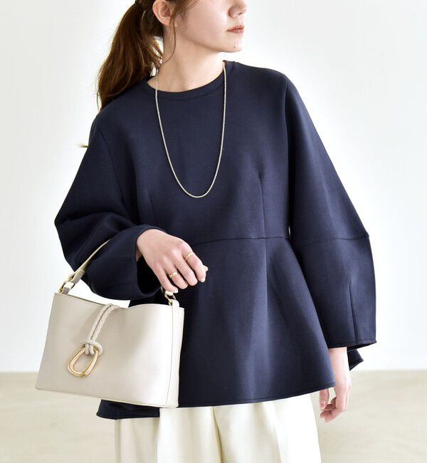 2026SSquaranciel大好評の大人見えスウェット「ポンチシリーズ」●デザイン大人フェミニンなペプラムシルエットのプルオーバー。ふんわりと広がるペプラムシルエットがポイントのスウェット。ウエス.. |