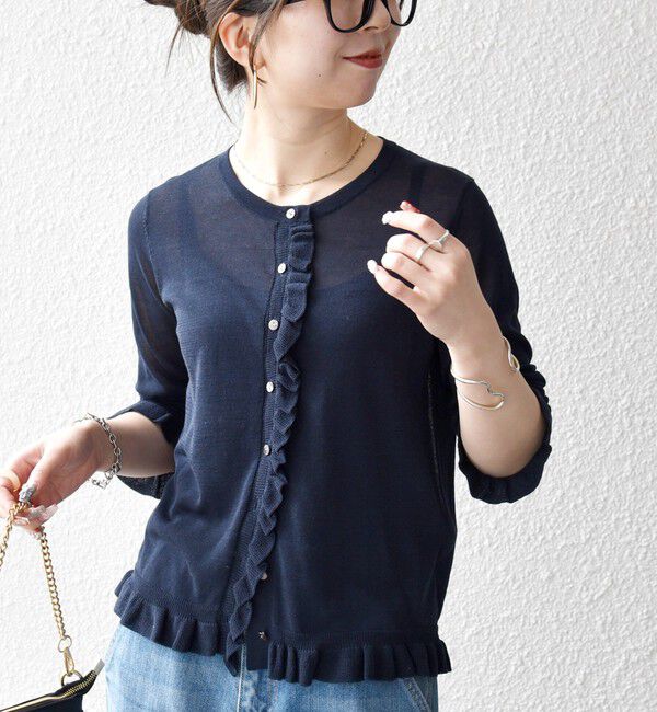 【シップス/SHIPS】 SHIPS any:〈手洗い可能〉コットン ミックス シアー フリル カーディガン
