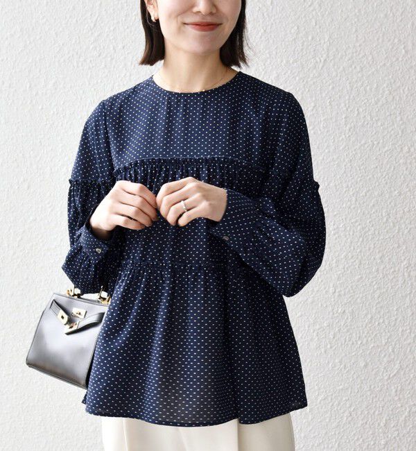 【シップス/SHIPS】 SHIPS any:〈洗濯機可能〉ドット ノーカラー ティアード フレア ブラウス
