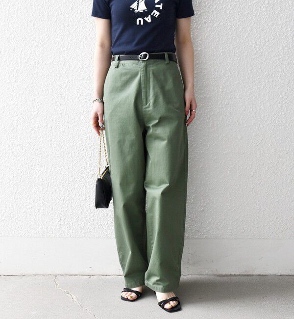 【26SS】〈デザインポイント〉股上深めで程よいゆるっと感がポイントのチノパンツ。こなれ感のあるセミワイドのシルエットながら、ノータックなのでスッキリした印象で着用いただけます。ウエスト.. |