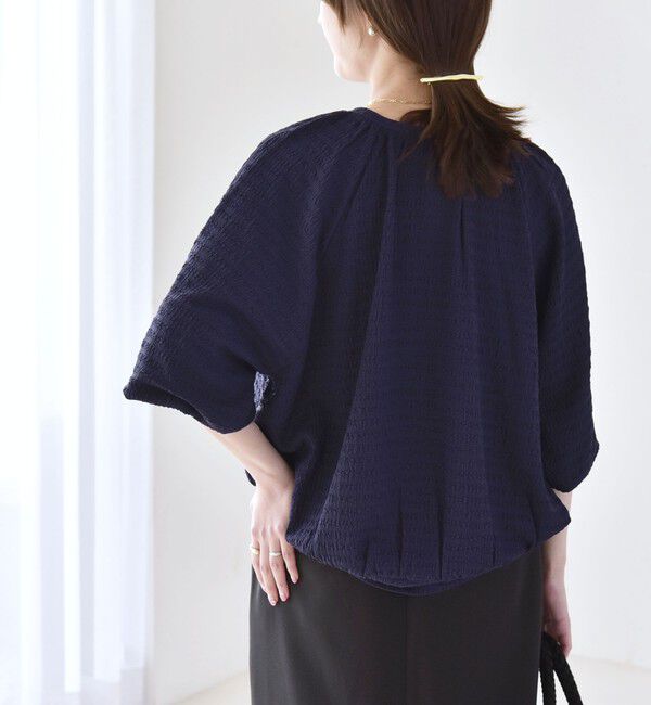 2026SSquaranciel●デザインブラウスのようにきちんと感がありながら、楽な着心地が嬉しいジャカードジャージー素材のプルオーバー。首元や裾にギャザーを施し、ふんわりと柔らかな丸みのあるコクー.. |