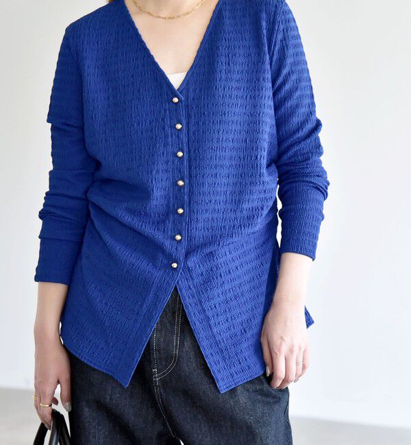 【シップス/SHIPS】 quaranciel:〈洗濯機可能〉ジャカード ジャージー Vネック ギャザー カーディガン