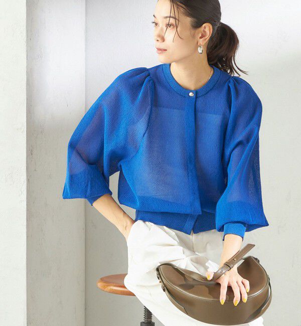 【シップス/SHIPS】 〈手洗い可能〉メランジ シアー パフ スリーブ カーディガン
