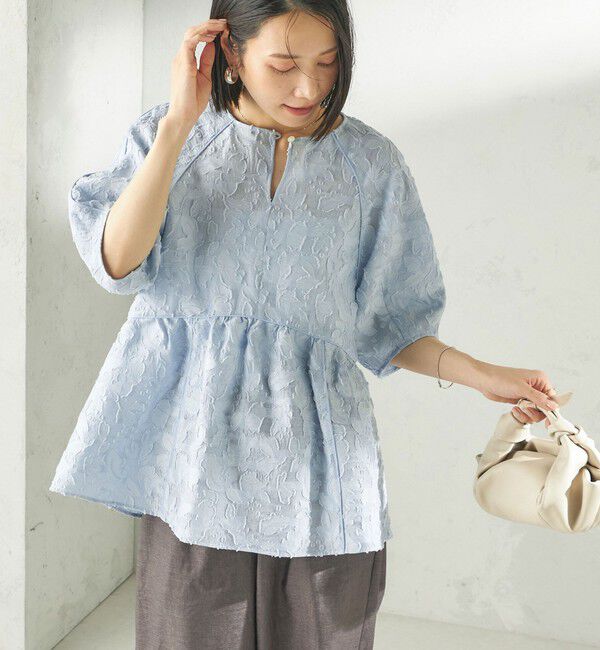 【シップス/SHIPS】 〈手洗い可能〉ジャカード ペプラム ブラウス