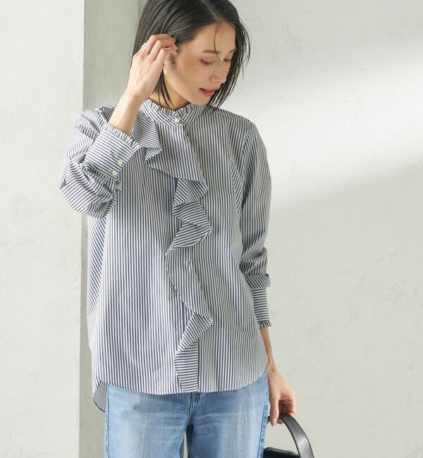 【シップス/SHIPS】 〈手洗い可能〉パール モチーフ ボタン フリル ブラウス
