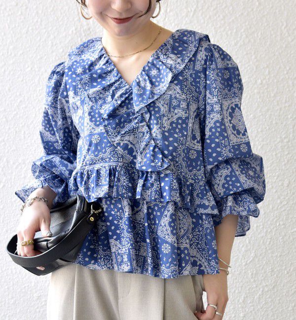【シップス/SHIPS】 SHIPS any:〈洗濯機可能〉バンダナ プリント カシュクール フリル ブラウス