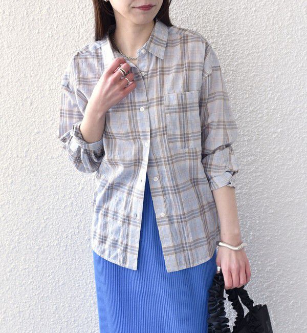 ■26SS■さらりと軽やかに羽織れるシアーチェックシャツ。-デザイン-程よい透け感が魅力のシアー素材を使用したチェックシャツ。オーバーすぎない絶妙なシルエットで、女性らしい印象で着用していた.. |