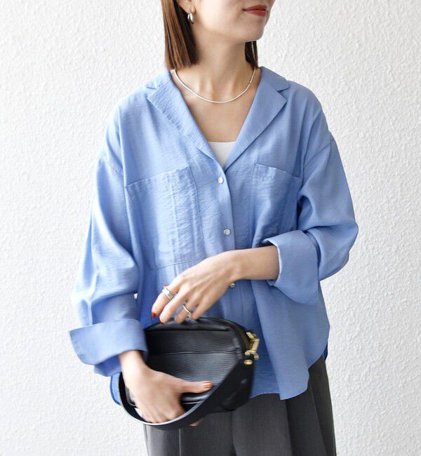 【26SS】〈デザインポイント〉とろみのある素材で、リラックス感たっぷりの開襟シャツ。顔まわりがすっきり見えするオープンカラーで、抜け感のある雰囲気に。ゆったりとしたシルエットで身体のラ.. |