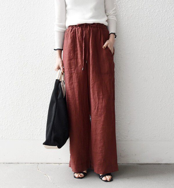 【26SS】〈デザインポイント〉軽やかなリネンの風合いが魅力のワイドイージーパンツ。ゆったりとしたシルエットとウエストは総ゴム仕様で、快適な履き心地が魅力。大きめのベイカーポケットとウエ.. |