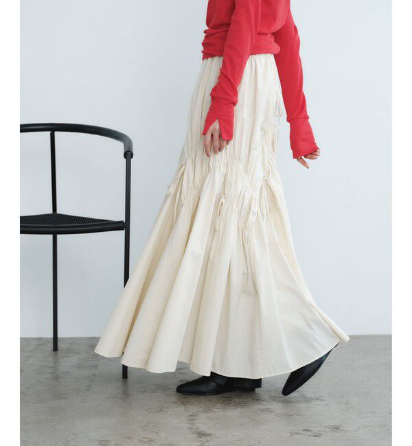【グリーンレーベルリラクシング/green label relaxing】 <EMMEL REFINES>EM ランダムギャザー リボン スカート
