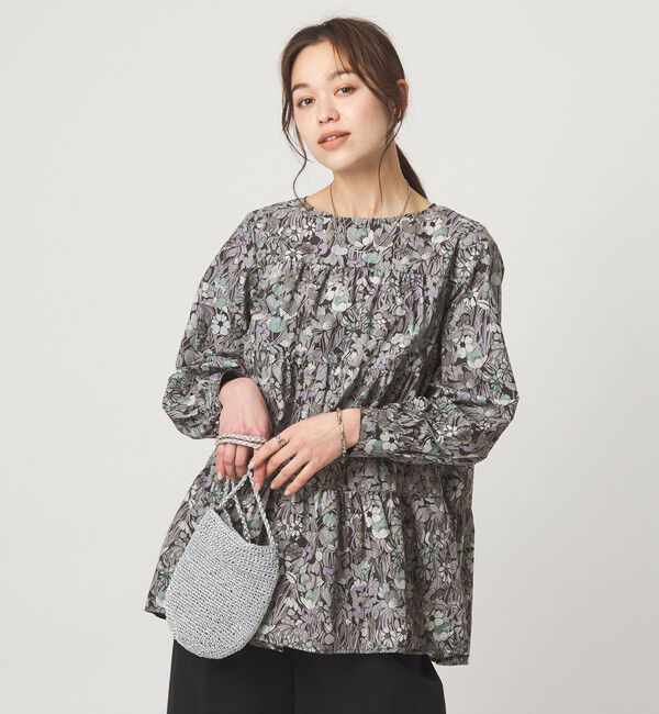 <LIBERTY FABRICS>のボタニカル柄が目を惹くブラウス■デザインさらっと一枚で着映えするチュニック丈のティアードブラウス。ふんわりとした袖のボリュームがポイントです。袖口は内側がシャーリ.. |