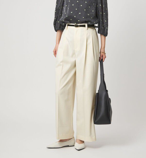 デイリー・お仕事両シーンで着回しのきくワイドパンツ■デザイン程よくワイドなシルエットがこなれ感のある2タックパンツ。きちんと感はありながら、さらっと軽やな着心地が魅力です。ウエストはバ.. |
