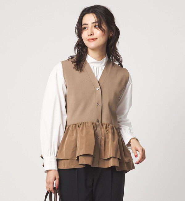 【グリーンレーベルリラクシング/green label relaxing】 フリル ドッキング ペプラム ニット ジレ ウォッシャブル