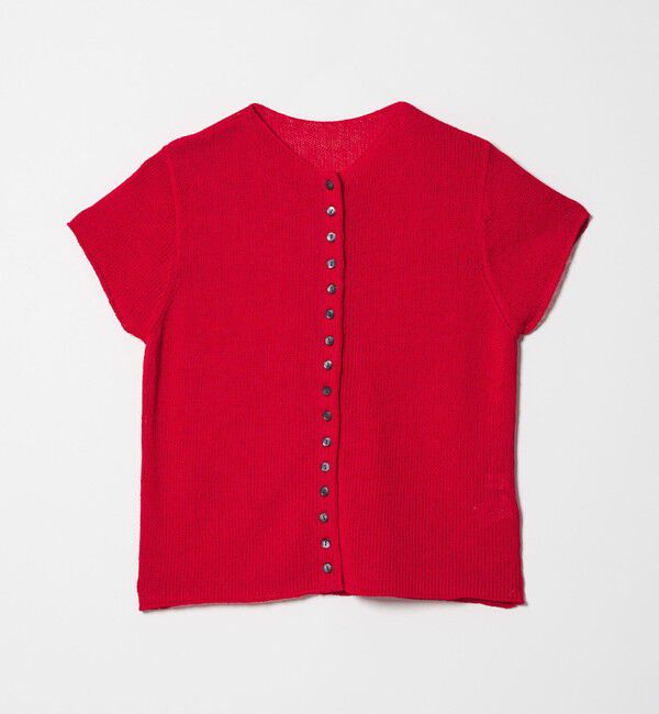 カラーがポイントのショートスリーブニット■デザインコンパクトなサイズ感とボタンデザインがかわいらしいショートスリーブニット。ゆるっと編むことでコンパクトなサイズ感でも着心地◎■素材さらっ.. |