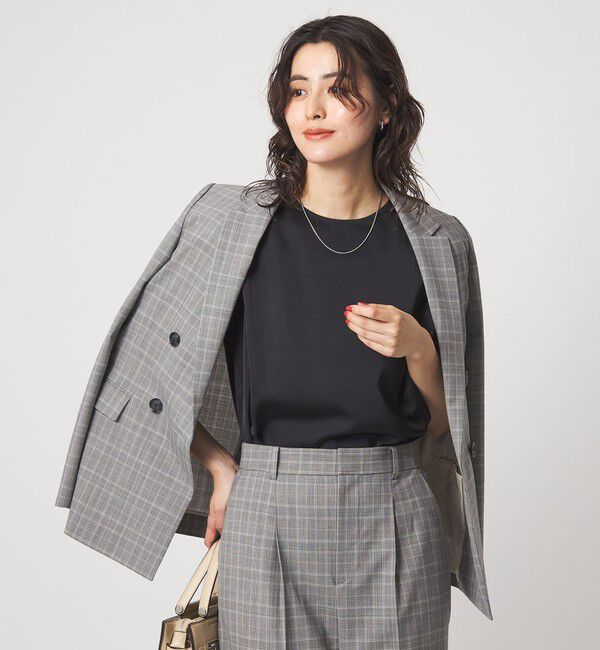 【グリーンレーベルリラクシング/green label relaxing】 サテン ドッキング ラウンドヘム タンクトップ カットソー