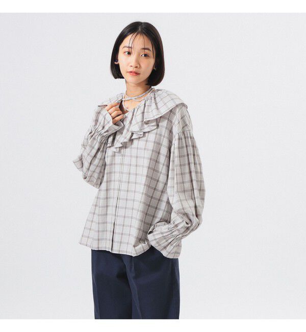 【ビームス ウィメン/BEAMS WOMEN】 チェック フリルカラー シャツ