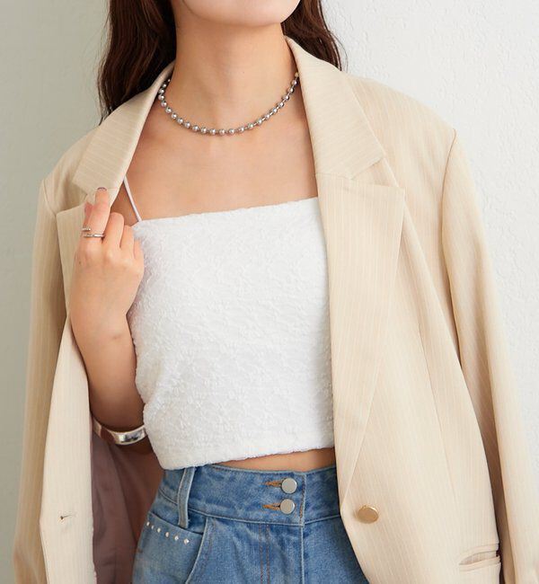 さりげないチュール使いで着映える ●デザイン ・チュールのトリミングがポイントで、トップスとしても映えるタンクトップ。 ・チュールを使用した細身のストラップは、ワンショルダーなど肌見せス.. |