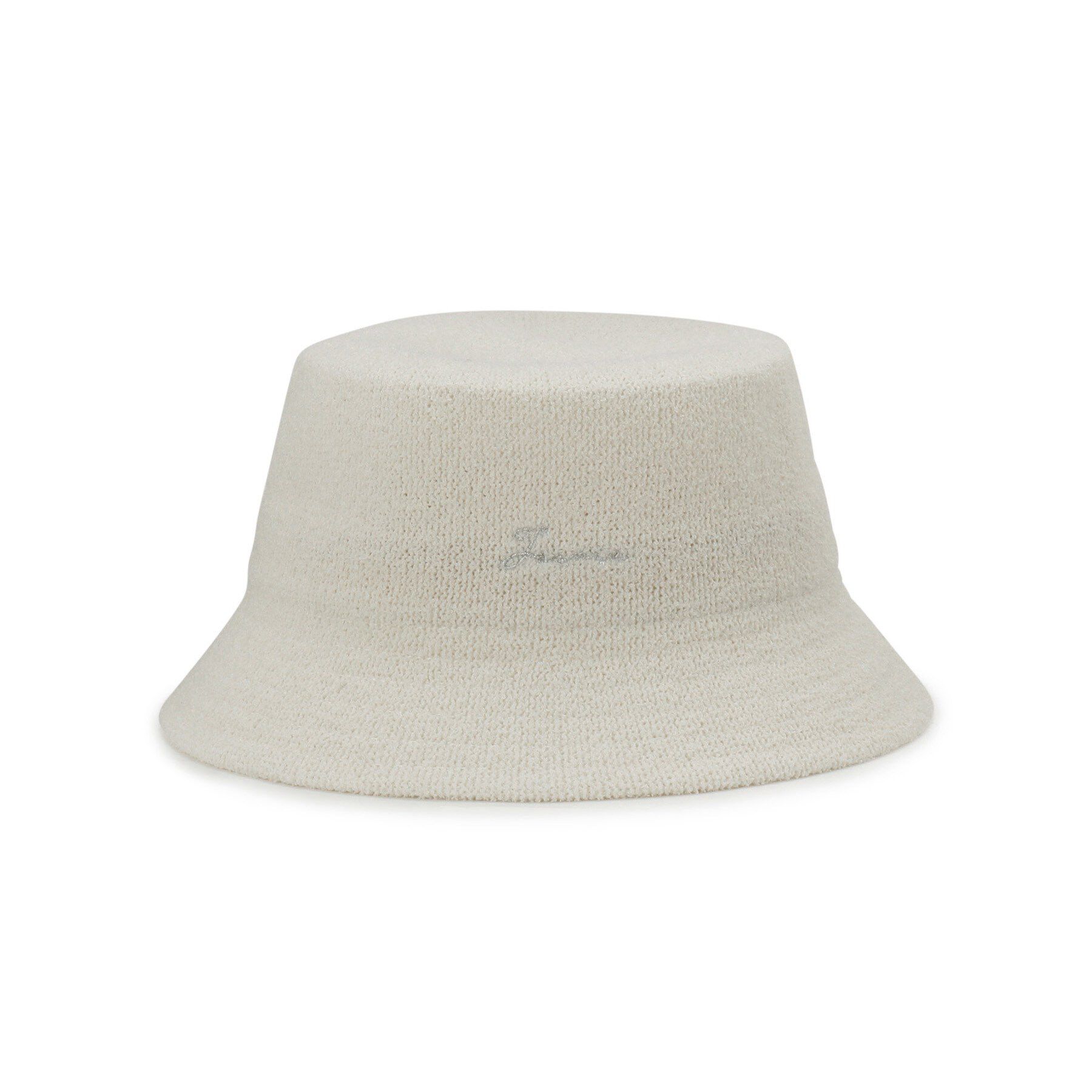 ポコポコとした表面感がかわいらしいバケットハット【デザイン】ポコポコ感のあるブークレ編みのハット。上品なロゴラメ刺繍がアクセントになっています。刺繍(フランス語) 『Jourie』Jour(日).. |