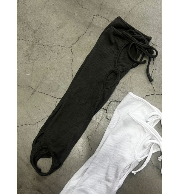 ホール開きデザインのトレンカソックスです。脛の外側にホールを開けエッジをプラスしています。上端にはリボンを付けキャッチーな印象にしています。LACE UP HEEL SNEAKERやWEDGE HEEL COVER SAND.. |