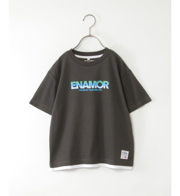 インナーをレイヤードしているような、フェイクデザインのキッズTシャツ。襟元や袖口からチラッとインナーが覗く、絶妙なバランスを再現しています。【デザイン】ビッグシルエット&重ね着風デザイ.. |