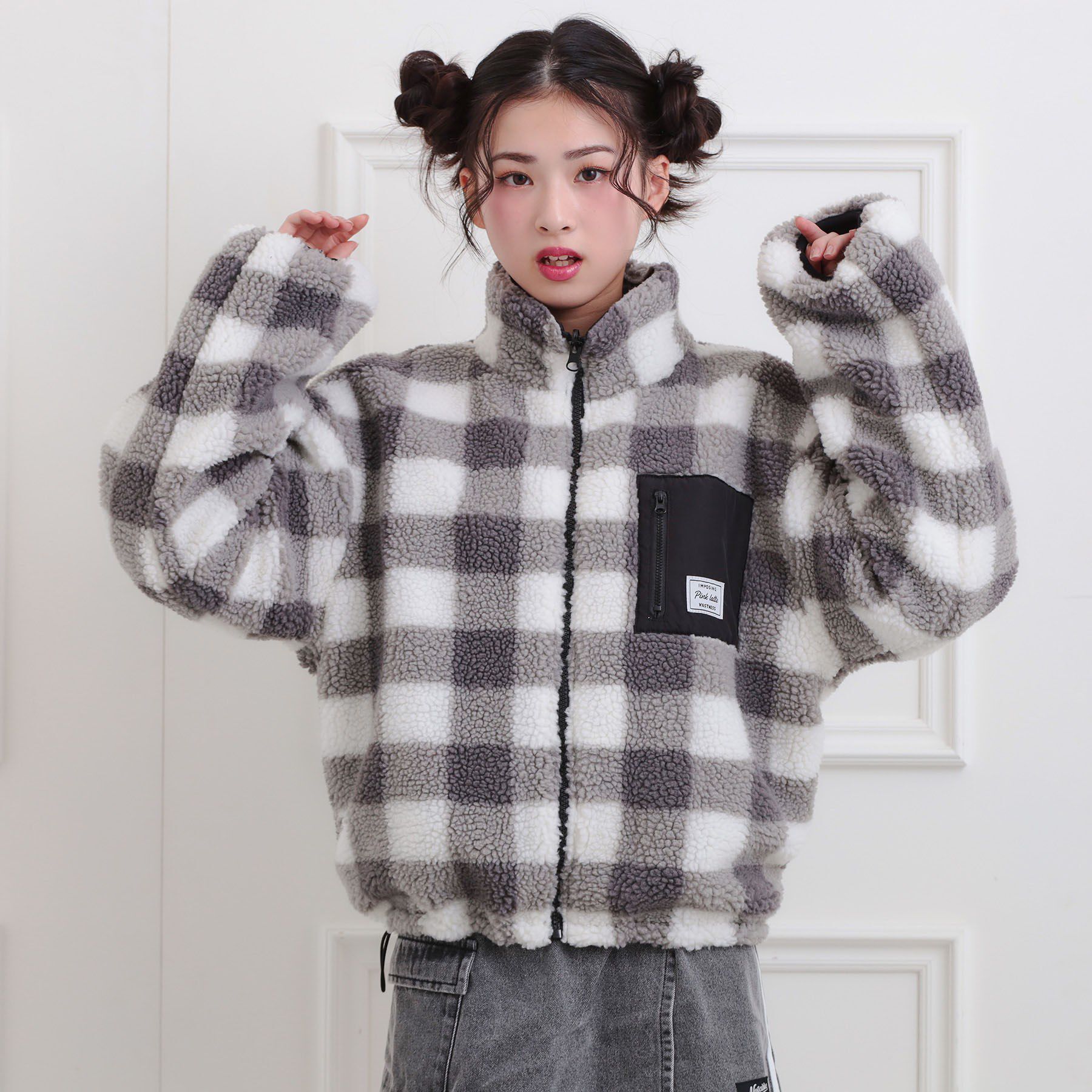 【デザイン】両面使えるリバーシブルデザイン。ボア側はモノトーンのチェック柄で、甘すぎずカジュアル過ぎないので色々なテイストに合います。裾にドローコードがあるのでサイズ調整可能。ハイネ.. |