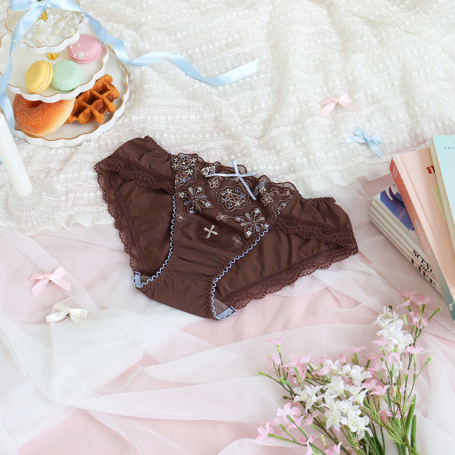 【甘くとろけるシュガーレース】小花とアイシングクッキーの刺繍をミックスした、甘く可愛らしいシリーズです。アイシングクッキーの中にも小花柄をしのばせて、全体にやさしくきらめくラメ糸をあ.. |